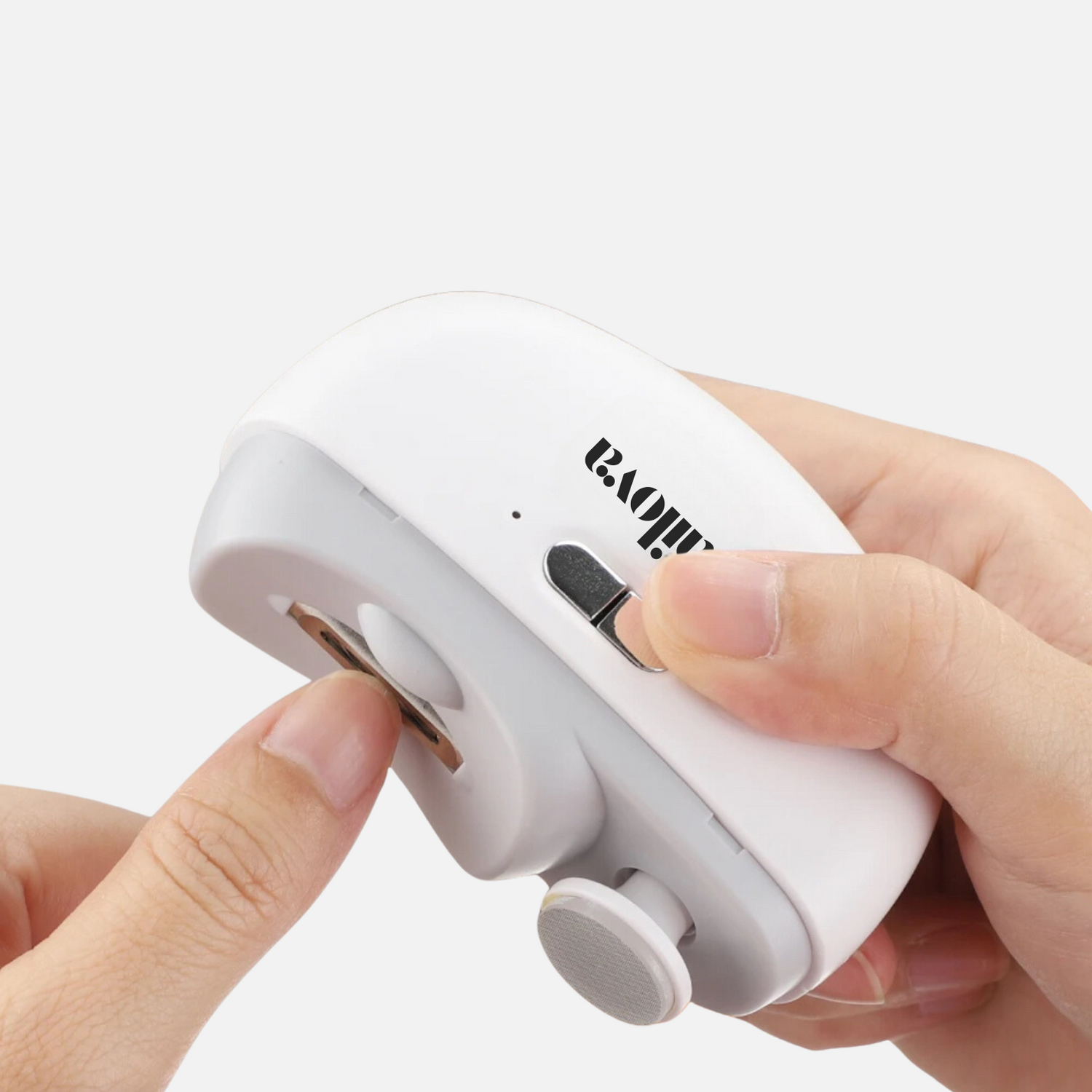 Nägel schneiden muss kein Kampf sein! Der Nailova Pro sorgt für sichere und sanfte Nagelpflege, ideal für Kinder und Babys. Der Trimmer schneidet zuverlässig ohne Verletzungsgefahr und vermeidet den Stress, den herkömmliche Nagelpflege oft mit sich bringt.